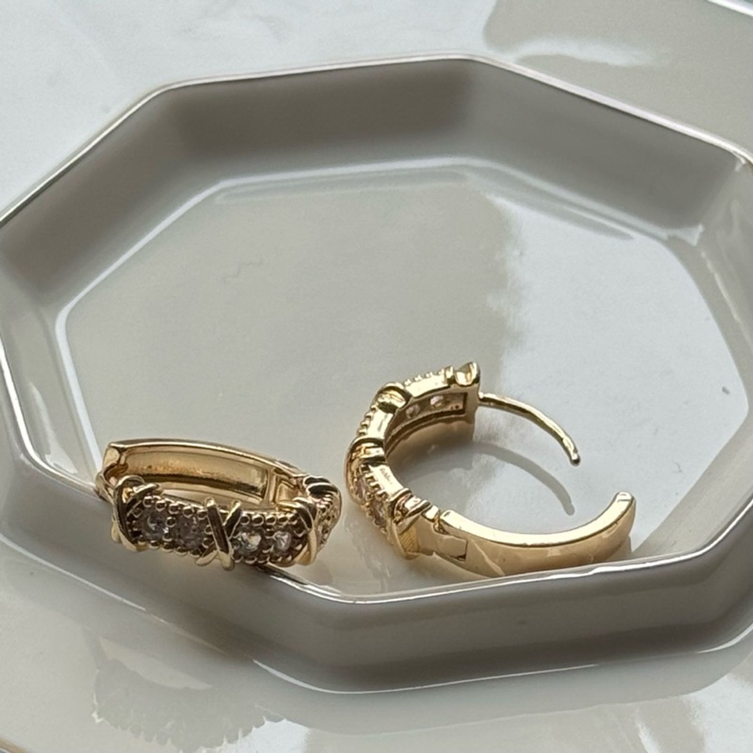 -14K gold plated + zircon-өнгөө алдахгүй-харшил өгөхгүйХэмжээ: 1.9 см